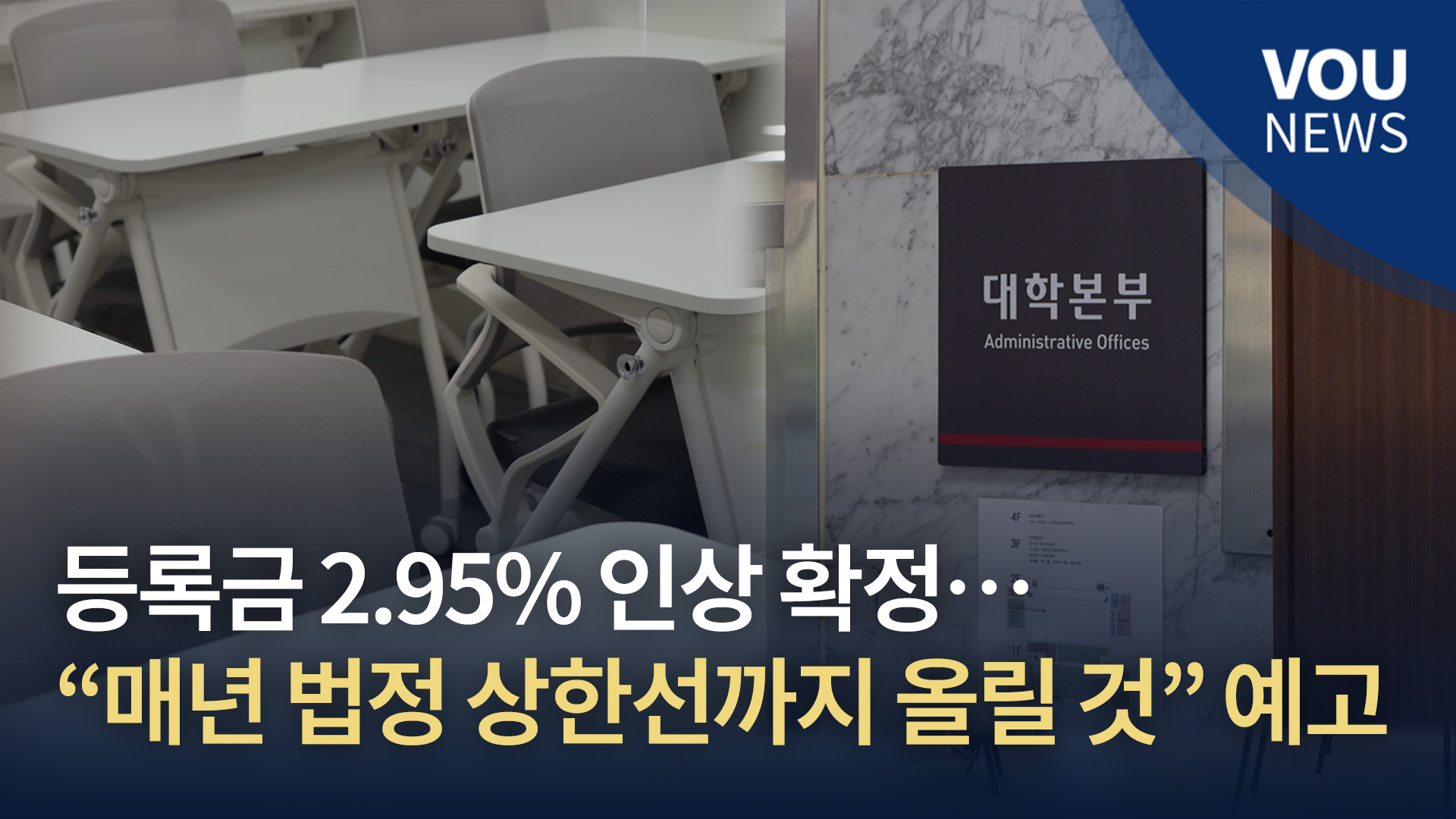 대학의소리방송국 등록금 2.95% 인상에… “매년 법정 상한선까지 올릴 것” 예고이소울 기자 2026-02-11 hit 812026학년도 등록금이 2.95% 인상으로 확정됐습니다. 대학은 재정 현실을 이유로 들며 인문사회계열 약 9…