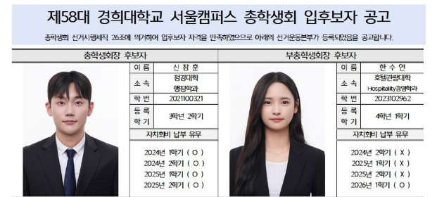 Campus [2026 Global By-election] Single Candidate Ticket Registered for Global Campus G…by Chung, So-young 2026-03-17 hit 107Candidate team route has entered the 2026 Global by-election.