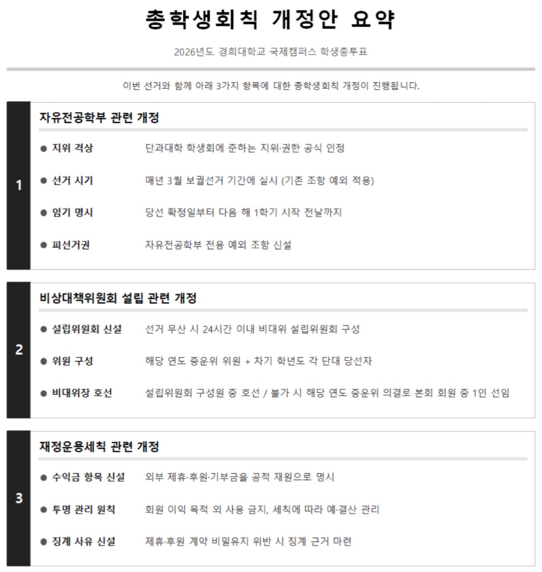 뉴스 국제캠 보궐선거, 총학생회 루트 선본 당선김예찬 기자 2026-03-29 hit 93【국제】 2026학년도 총학생회 단위 보궐선거 연장투표에서 루트 선거운동본부(선본)의 정재우(Postmodern음악학 2021...