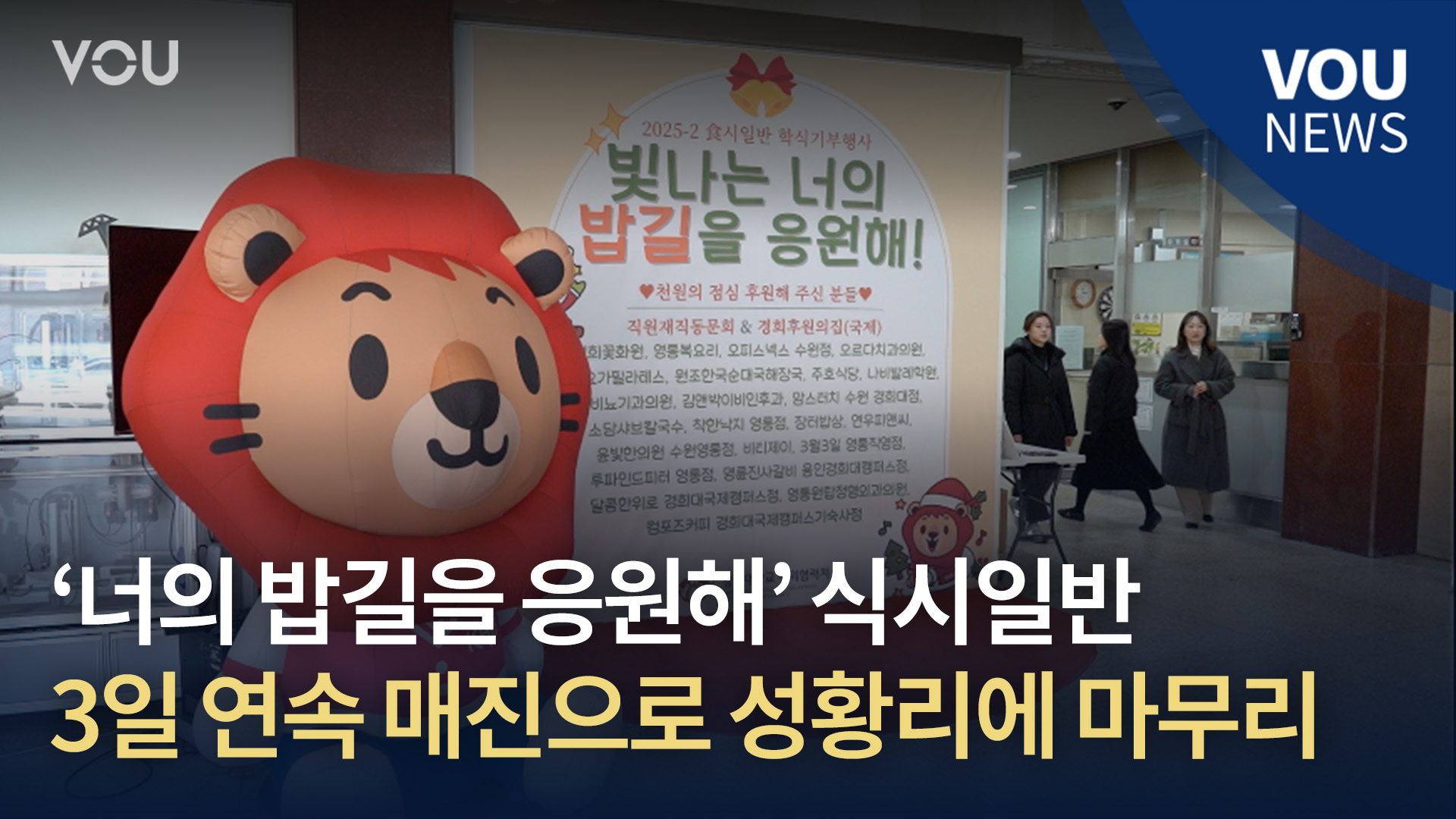 뉴스 ‘너의 밥길을 응원해’ 식시일반, 3일 연속 매진으로 성황리에 마무리이하윤 기자 2025-12-23 hit 97경희대학교 구성원들의 기부금으로 운영된 기말고사 응원 행사 ‘식시일반’ 이 3일 연속 매진을 기록하며 성황리에 마무리됐습니다.